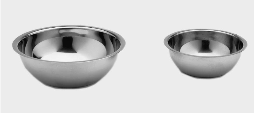 Rozsdamentes acél tálak különféle méretekben.