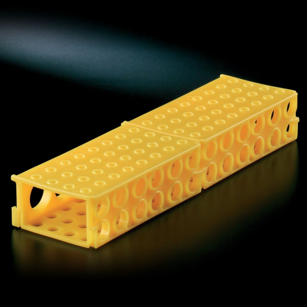 Különféle méretű kémcsövekhez használható, univerzális kémcsőállványok különféle színekben. Az alfanumerikus jelöléssel ellátott állványok kialakításuknak köszönhetően egymáshoz illeszthetőek. Ezeknek a mérete 172 x 50 x 90 mm. Fagyaszthatóak illetve vízfürdőben is használhatóak. Ezek az állványok a következő csövekhez alkalmasak: